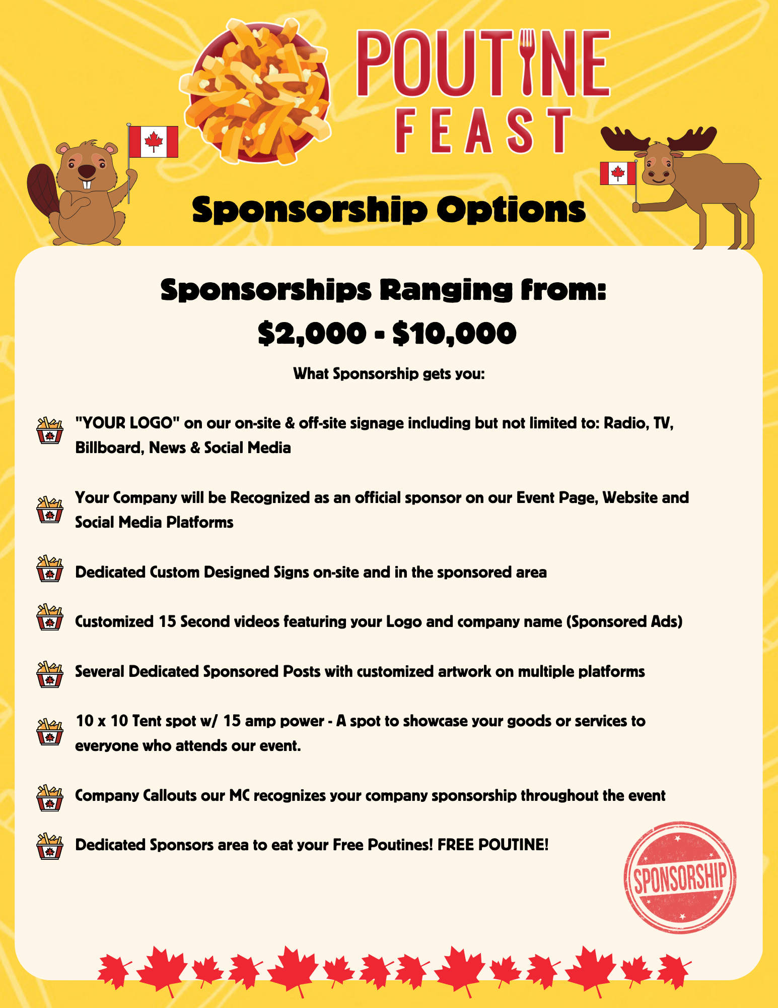 choose to sponsorSHIP what best suits your business!